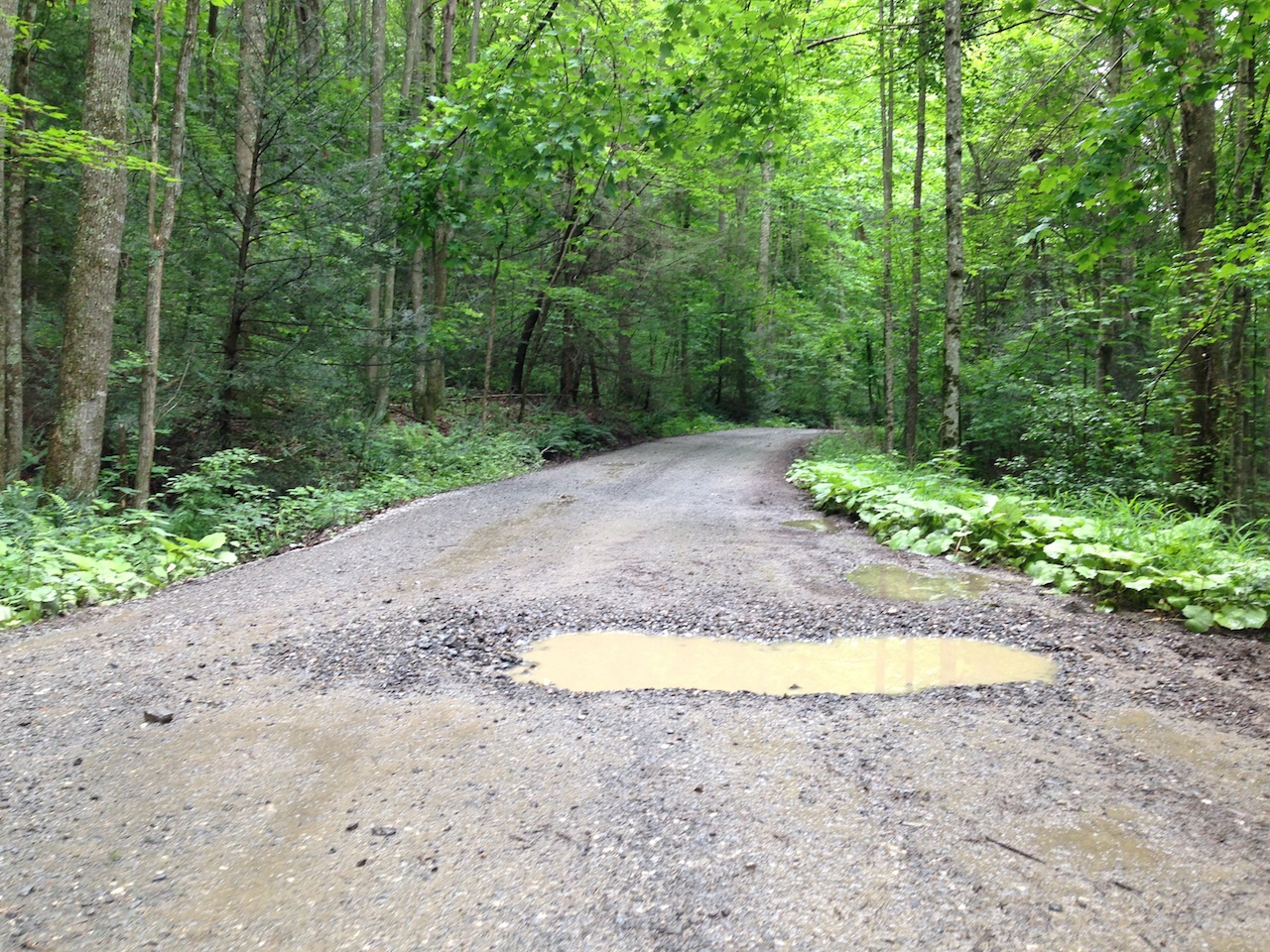 I was talking to a guest and he was going on about what a great area the Gorge is, how much he liked the cabins, how private and peaceful it was, and how great restaurants in Fayetteville were. And then he asked, “Why don’t you fix the road?”